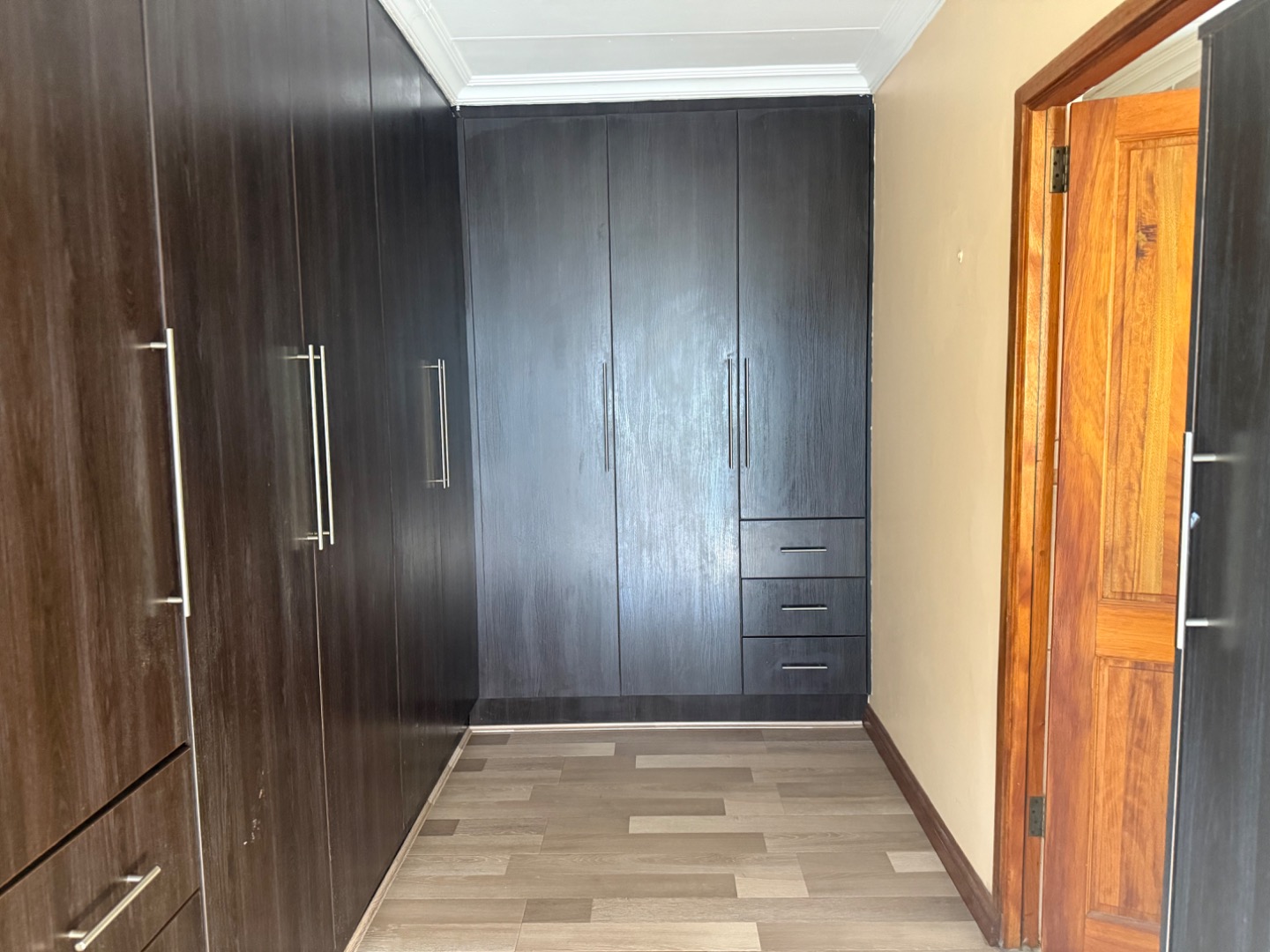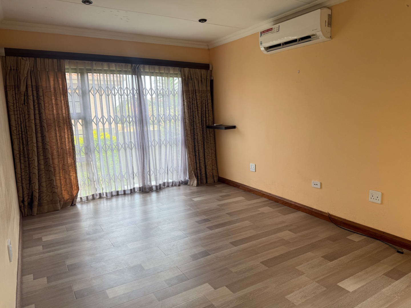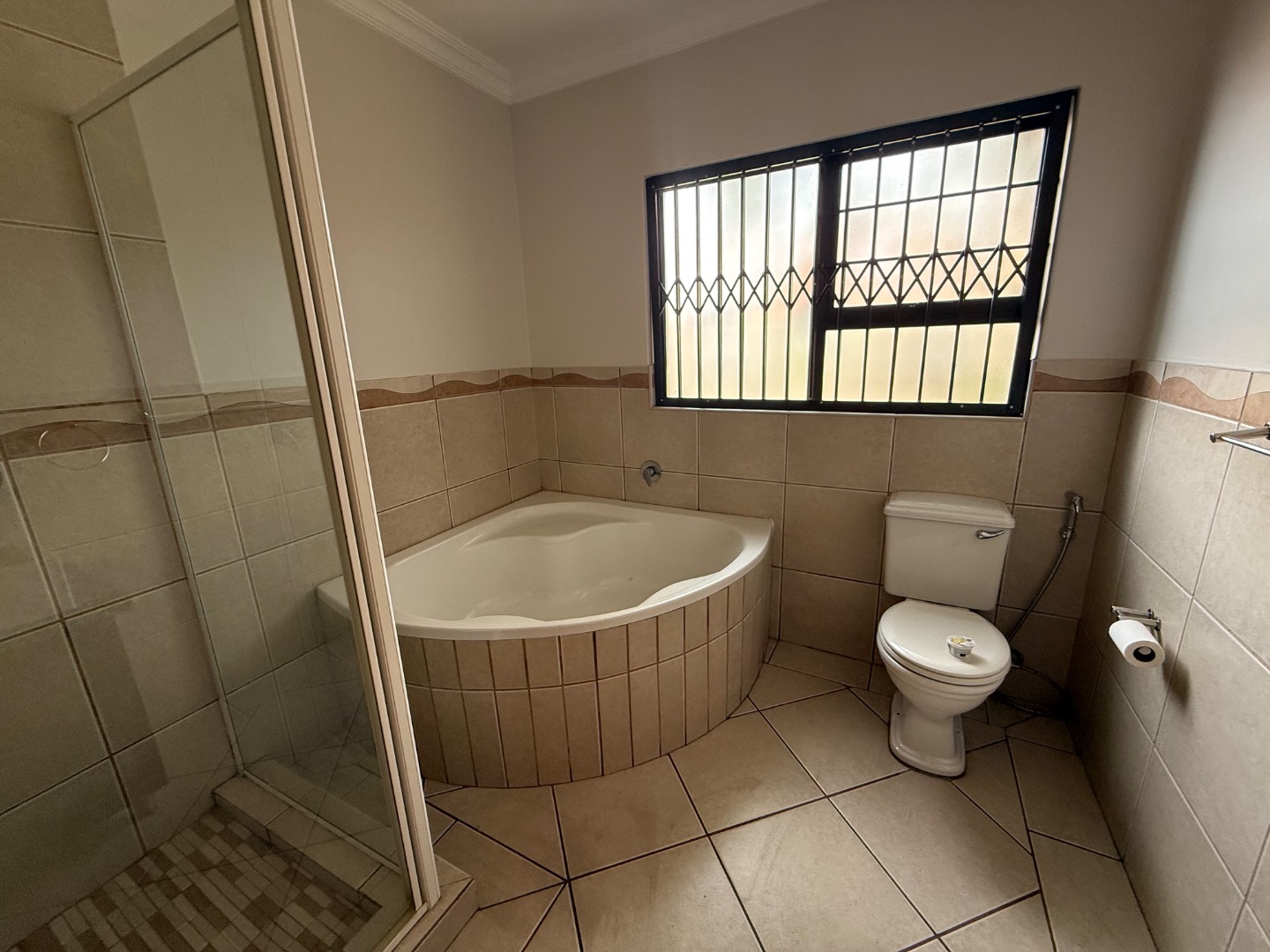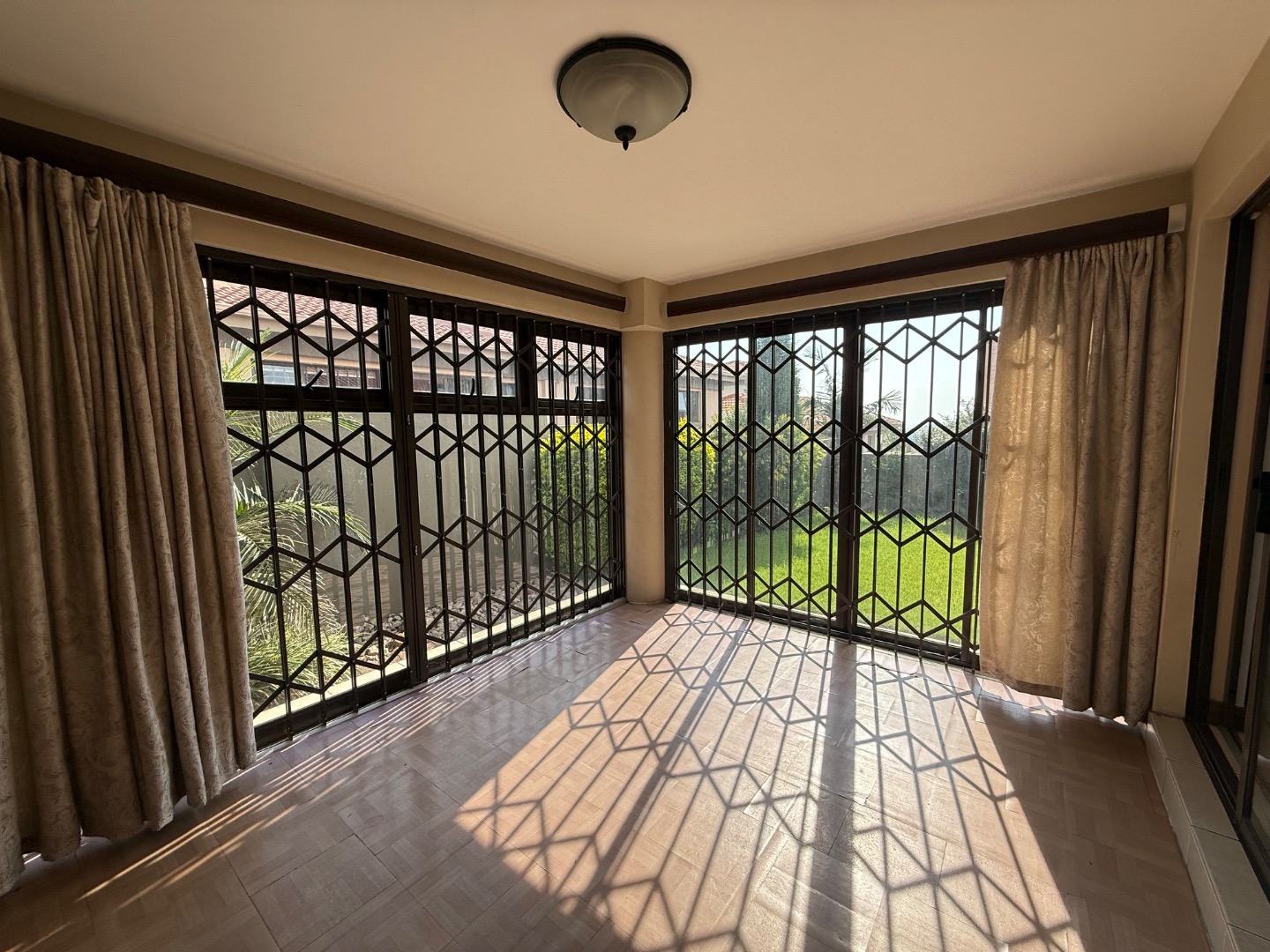 The home features three generously proportioned bedrooms with ample built-in cupboards. The main bedroom is a luxurious retreat, complete with air conditioning and extensive cupboard space. Two full bathrooms, including a tasteful en-suite, provide comfort and convenience.