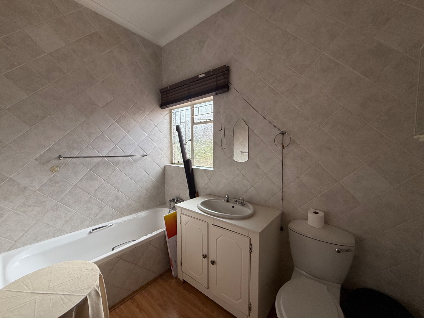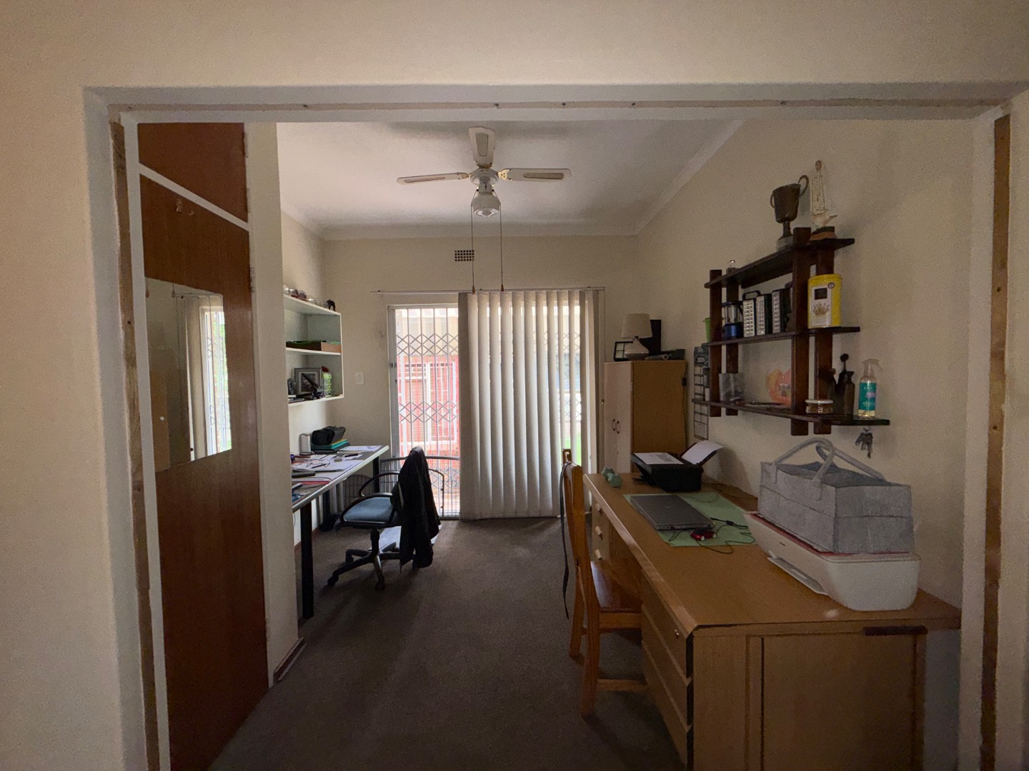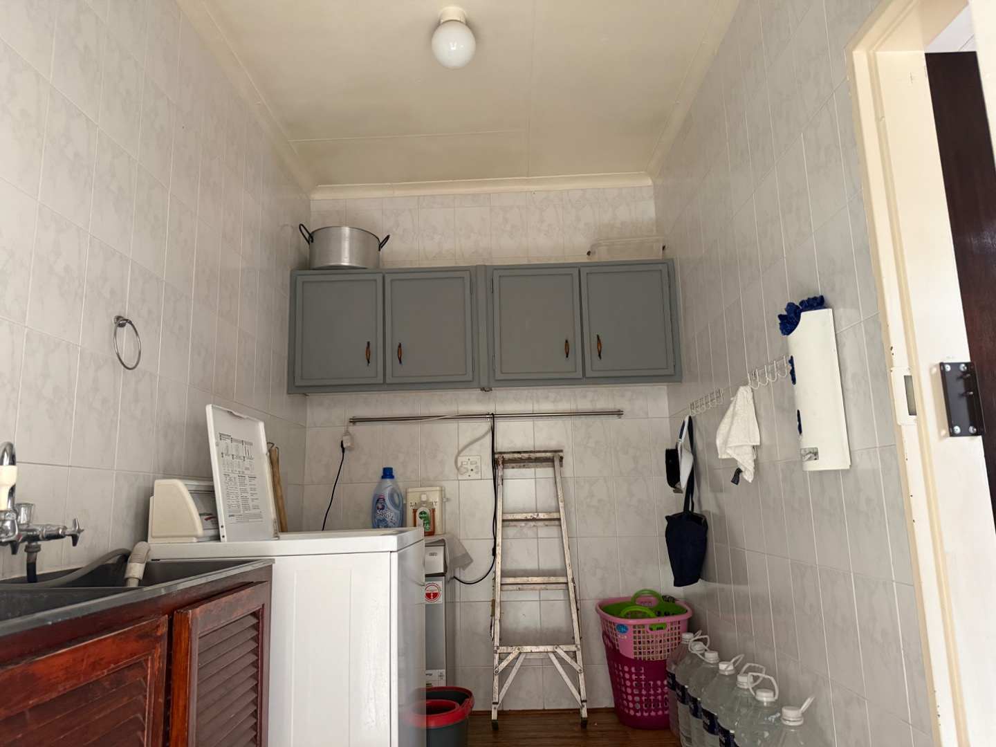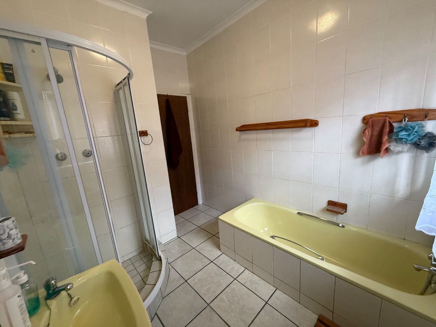 There are four spacious bedrooms in the main house. The main bedroom offers an en suite bathroom, ample cupboard space, and an added study with its own private entrance, leading directly to the swimming pool. A second bathroom services the remaining bedrooms.