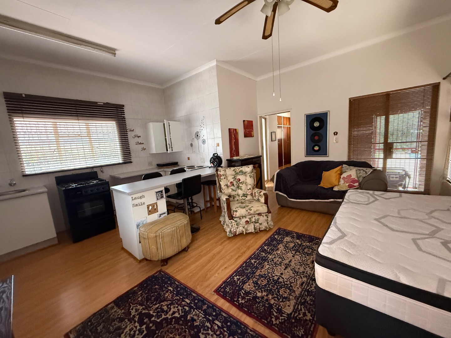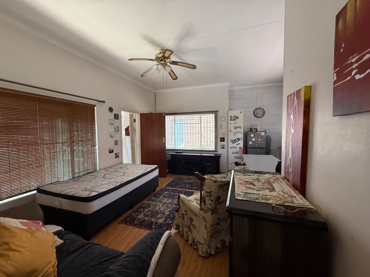 The property also offers a separate entrance with generous parking space for at least six vehicles, as well as space suitable for a trailer or caravan. Additional features include a one-bedroom flatlet with an open plan kitchen and lounge, ideal for extended family or rental income.