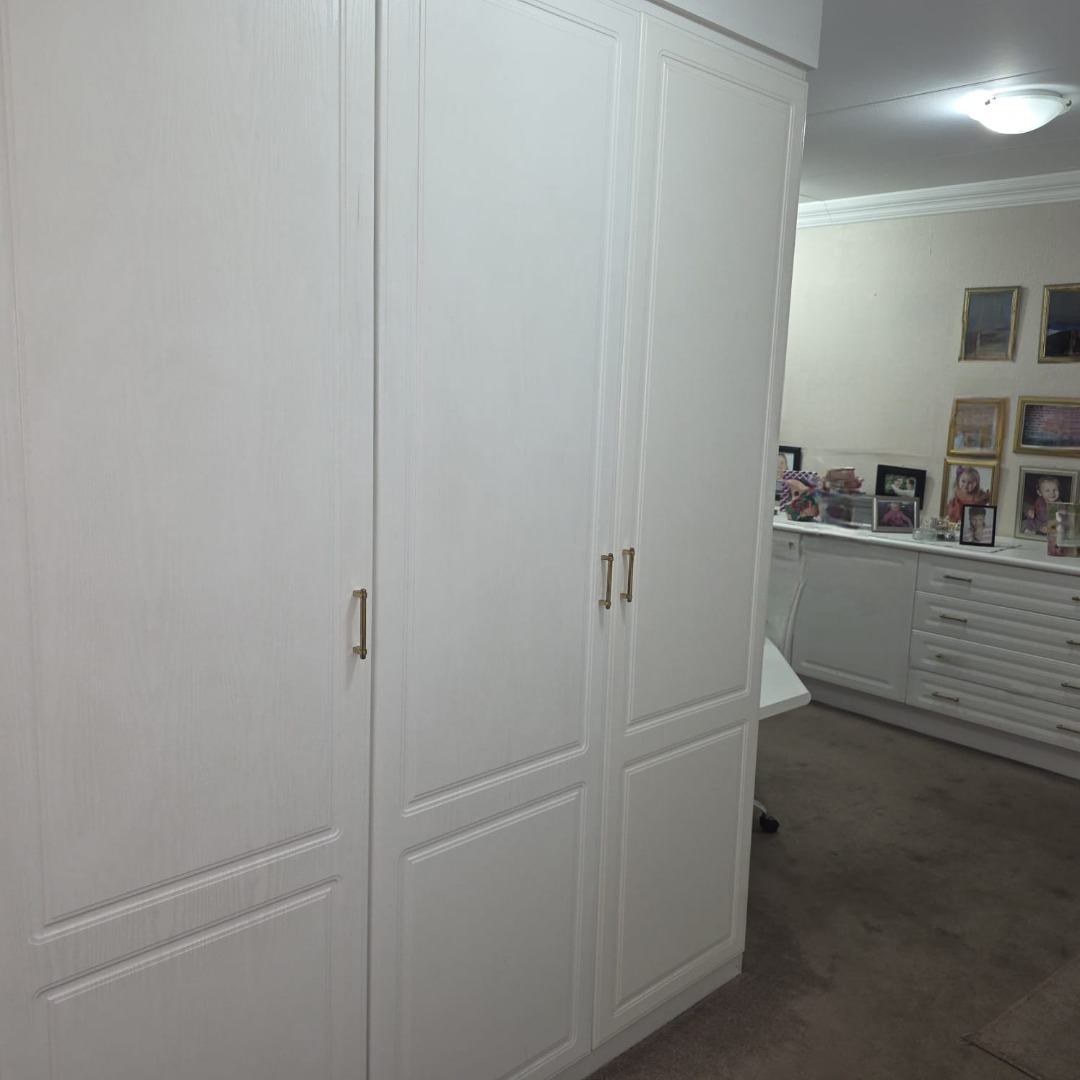 The multi-level layout adds architectural character, with all bedrooms located upstairs. Each bedroom is generously sized, fitted with built-in cupboards and plush carpeting. The main bedroom is a private retreat featuring a dressing area with built-in cupboards, a luxurious en-suite bathroom, and a private balcony to enjoy the morning sun.
