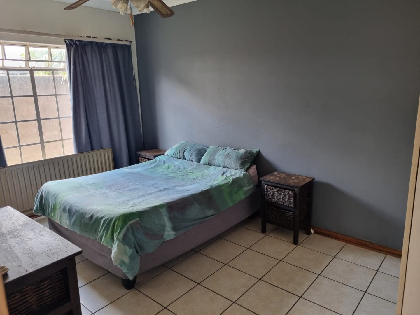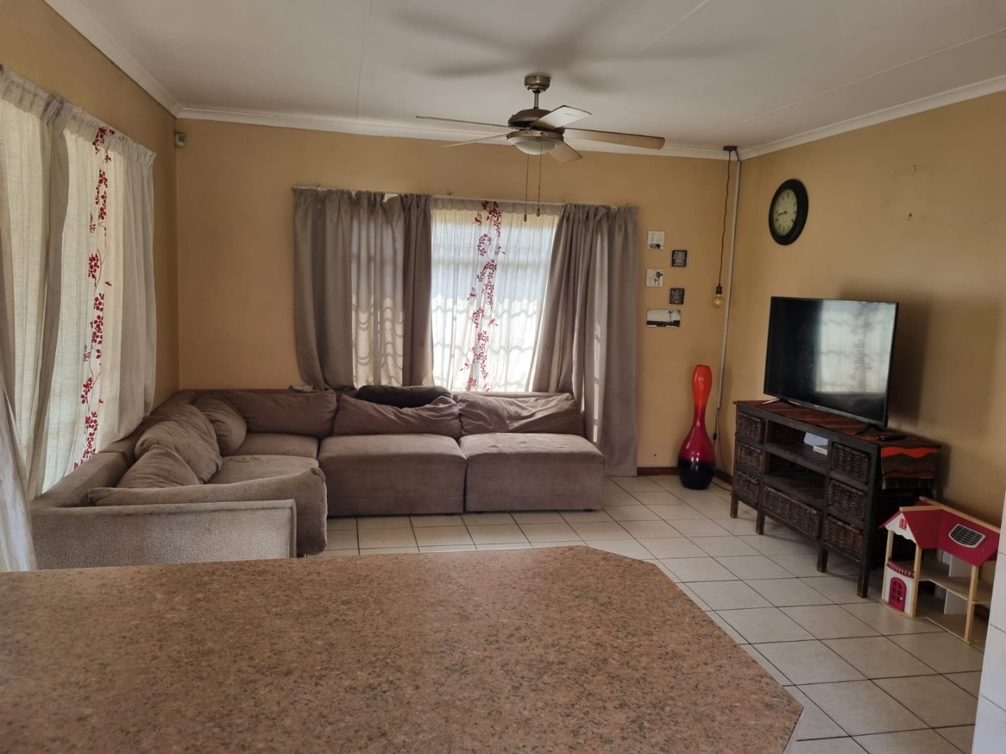 The home is fully tiled throughout and features an open-plan kitchen and lounge area, creating a spacious and practical layout ideal for modern living. The master bedroom includes an en-suite bathroom with a shower, while the second bathroom is fitted with a bath.