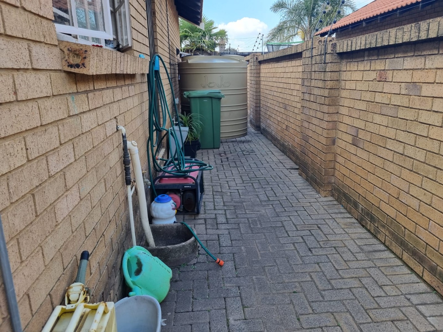 Outside, the property offers two carports, paving in the front and along the side of the home, as well as a small, easy-to-maintain garden with neat grass. A water tank with pump is installed for added convenience.