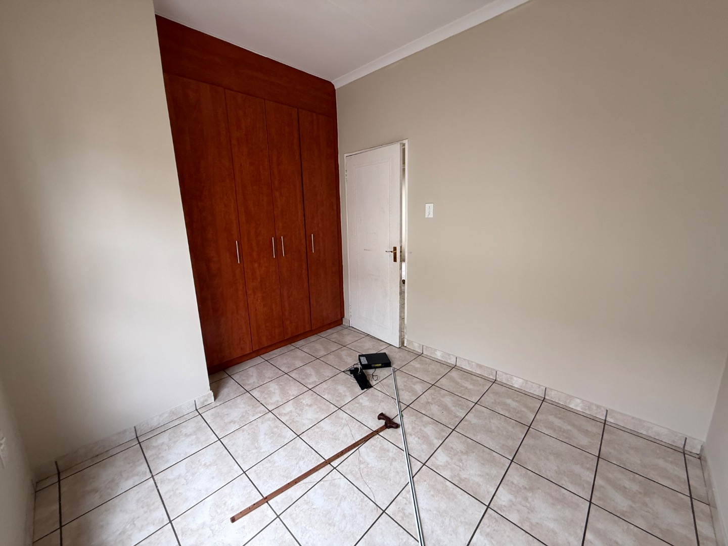 There are three well-sized, tiled bedrooms, all fitted with built-in cupboards. The property includes two bathrooms, with the main bedroom enjoying the convenience of an en-suite bathroom fitted with a shower.