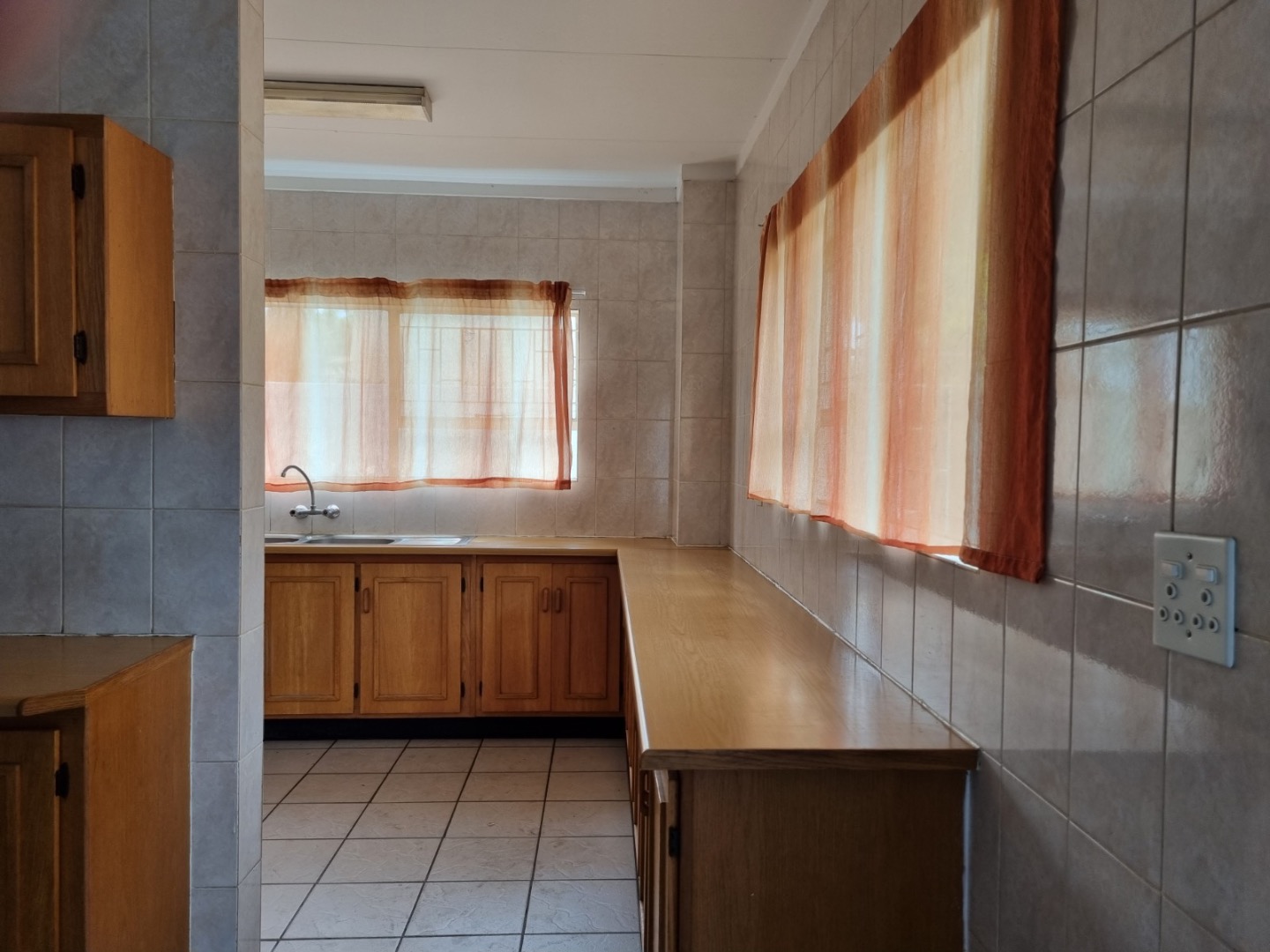 The property features a spacious open-plan lounge and dining area, along with a well-appointed kitchen and separate scullery. There are three bedrooms with built-in cupboards and two full bathrooms, including a main en-suite.