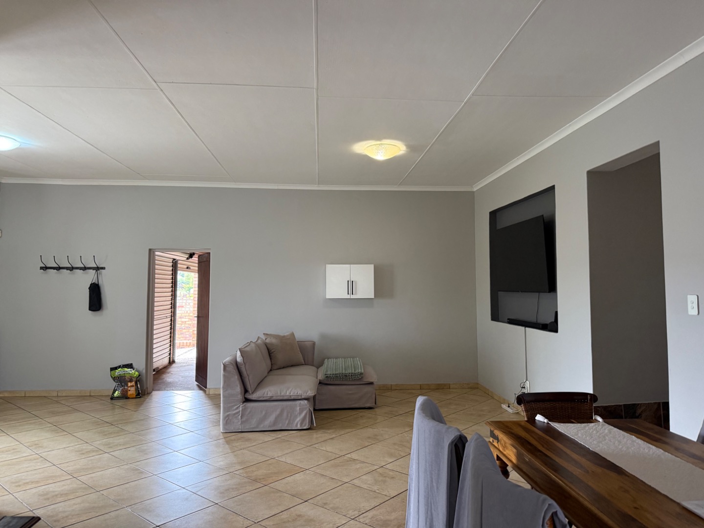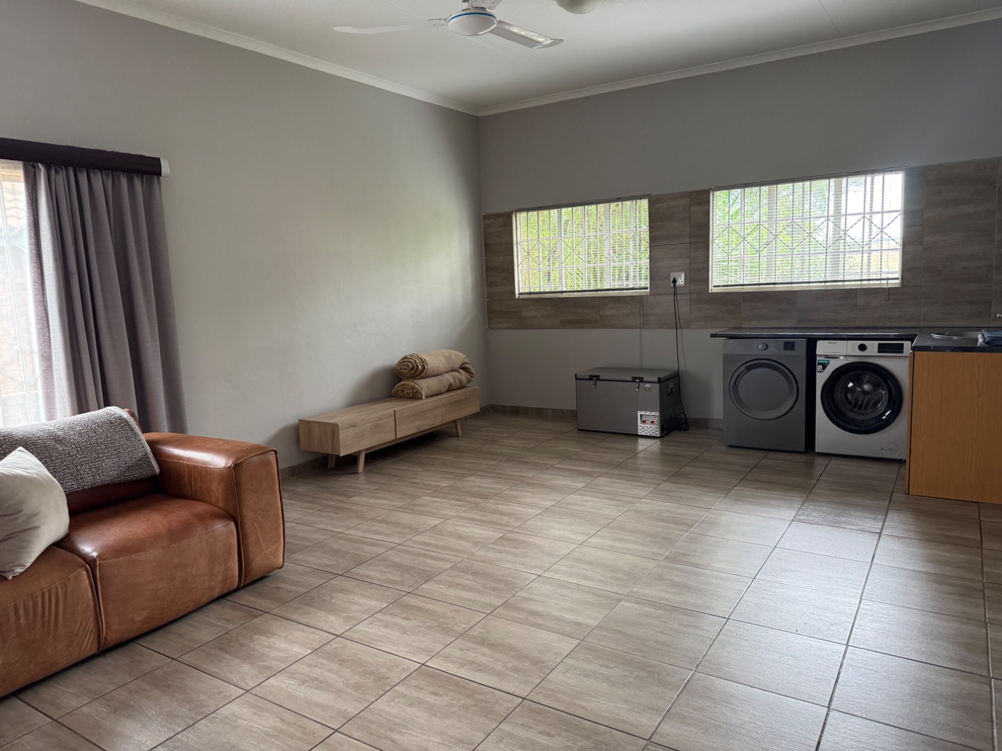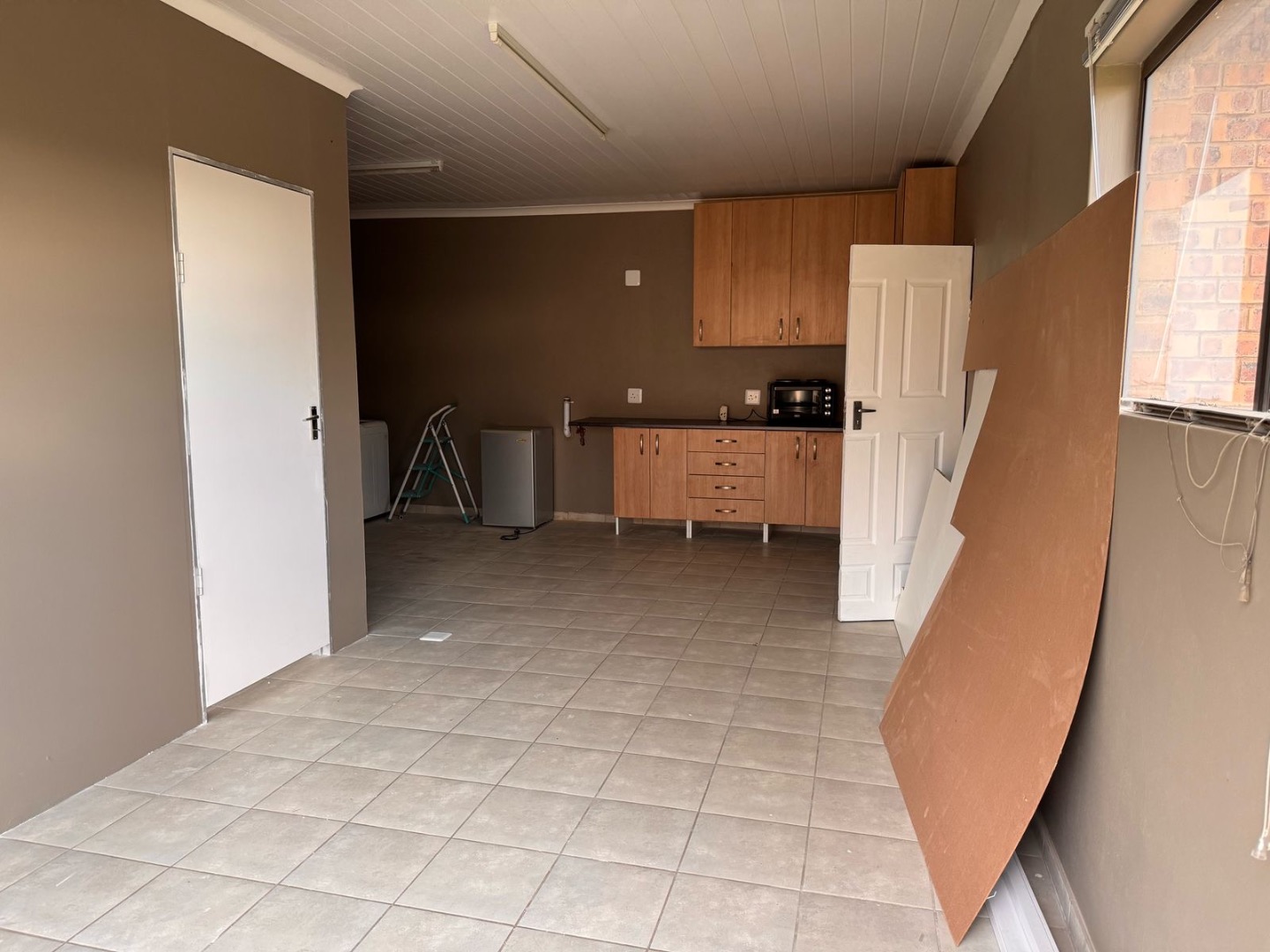 A standout feature is the one-bedroom flatlet with its own private entrance. The flatlet offers an open-plan kitchen and lounge, as well as a gas geyser—ideal for a work-from-home setup, private office, or extended family use.