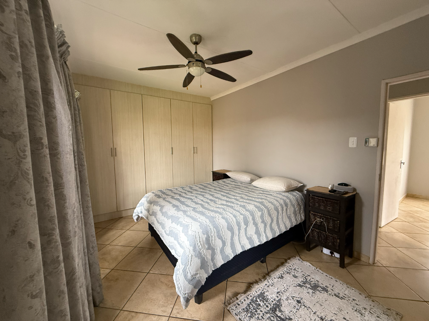 The main house offers three well-sized bedrooms with built-in cupboards and two bathrooms, including a main en-suite. Additional features include two garages for secure parking.