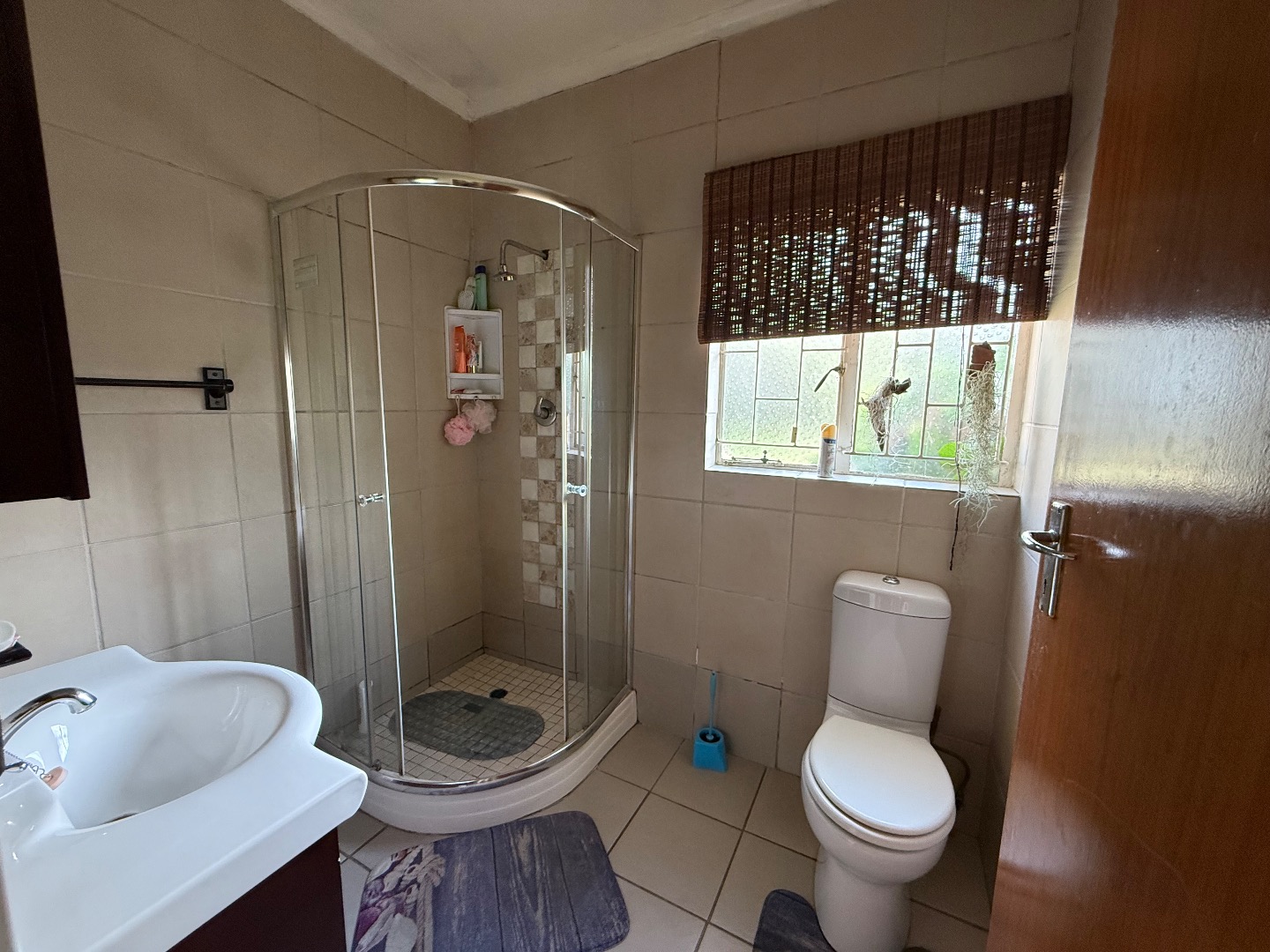 Accommodation comprises four well-proportioned bedrooms, each offering a private retreat. The master bedroom benefits from an en-suite bathroom, while a second bathroom serves the remaining rooms. Bedrooms feature durable laminate wood flooring and enjoy natural light, complemented by security bars on windows. One bathroom boasts a jetted bathtub, while the other includes a compact corner shower.