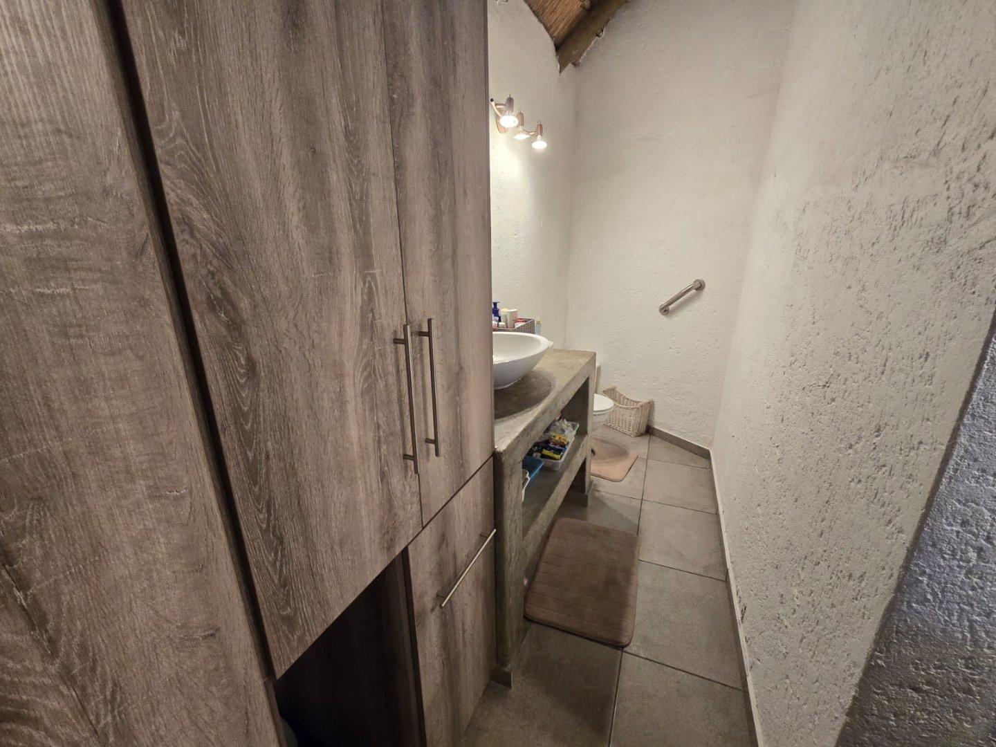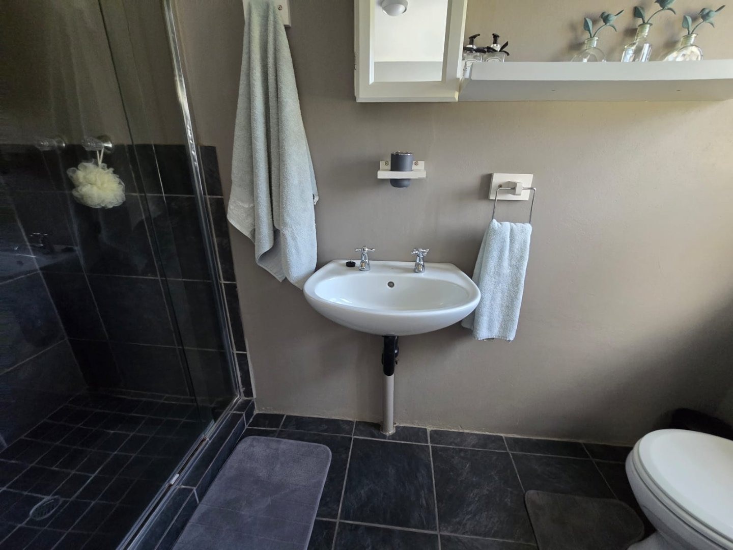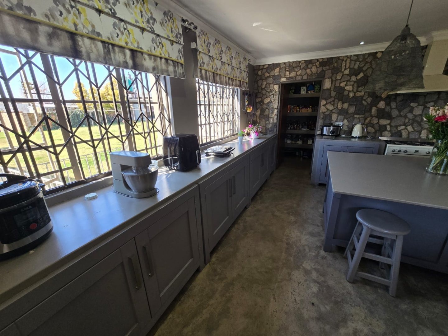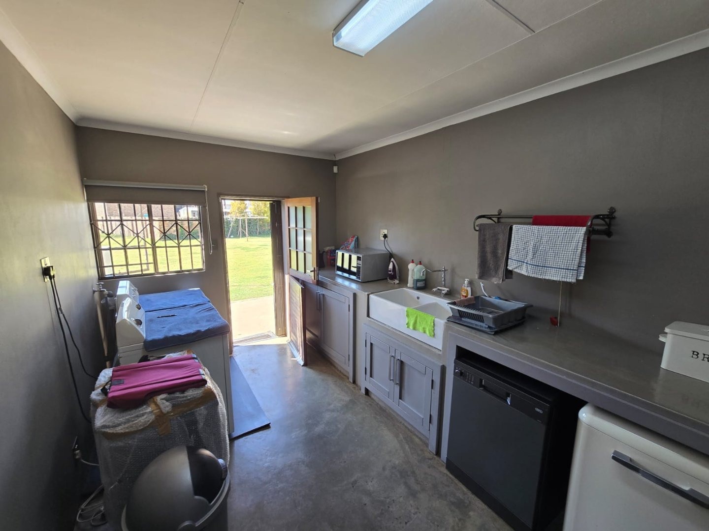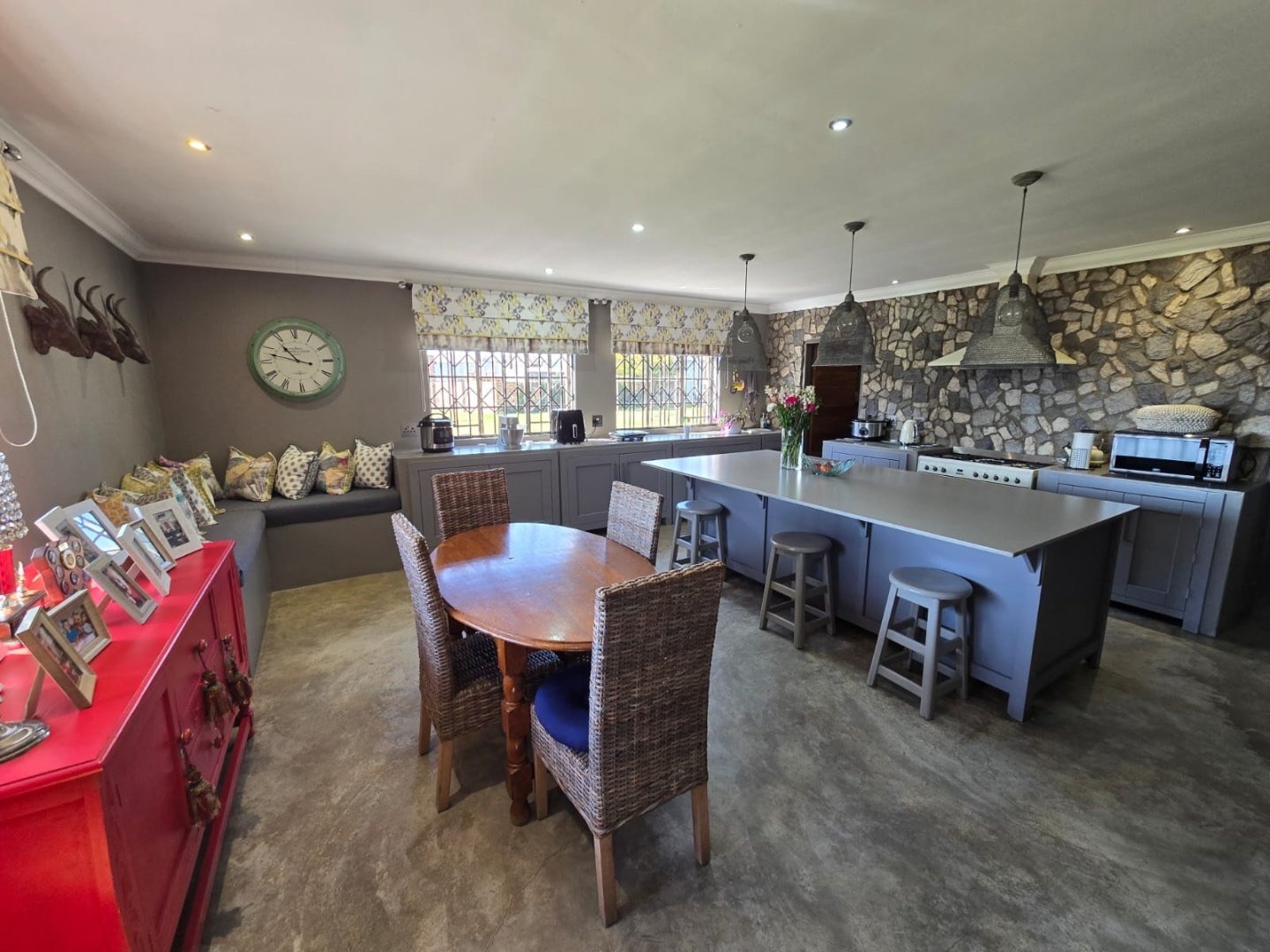 The main residence is spacious, stylish, and designed for both comfort and entertaining. It offers four generously sized bedrooms, three of which feature en suite bathrooms, as well as an additional guest toilet for convenience. The home boasts a modern open-plan layout, with a large, well-equipped kitchen that flows seamlessly into the dining area, making it ideal for family living. The kitchen is further complemented by a separate scullery, laundry area, pantry, and linen room, ensuring excellent functionality and ample storage.
