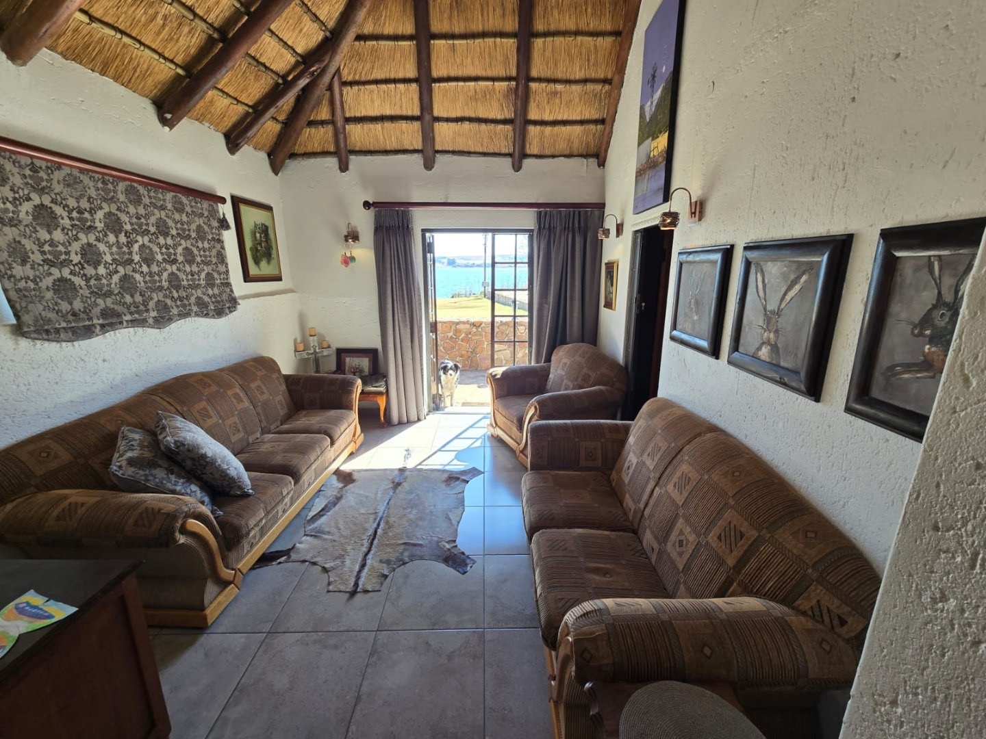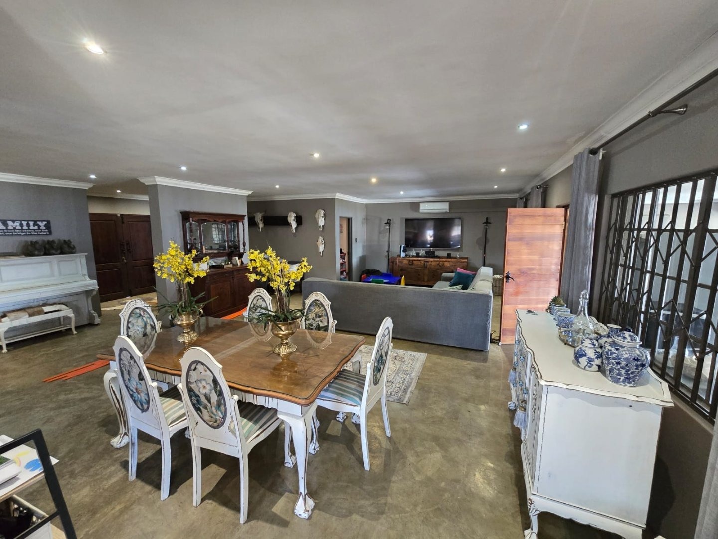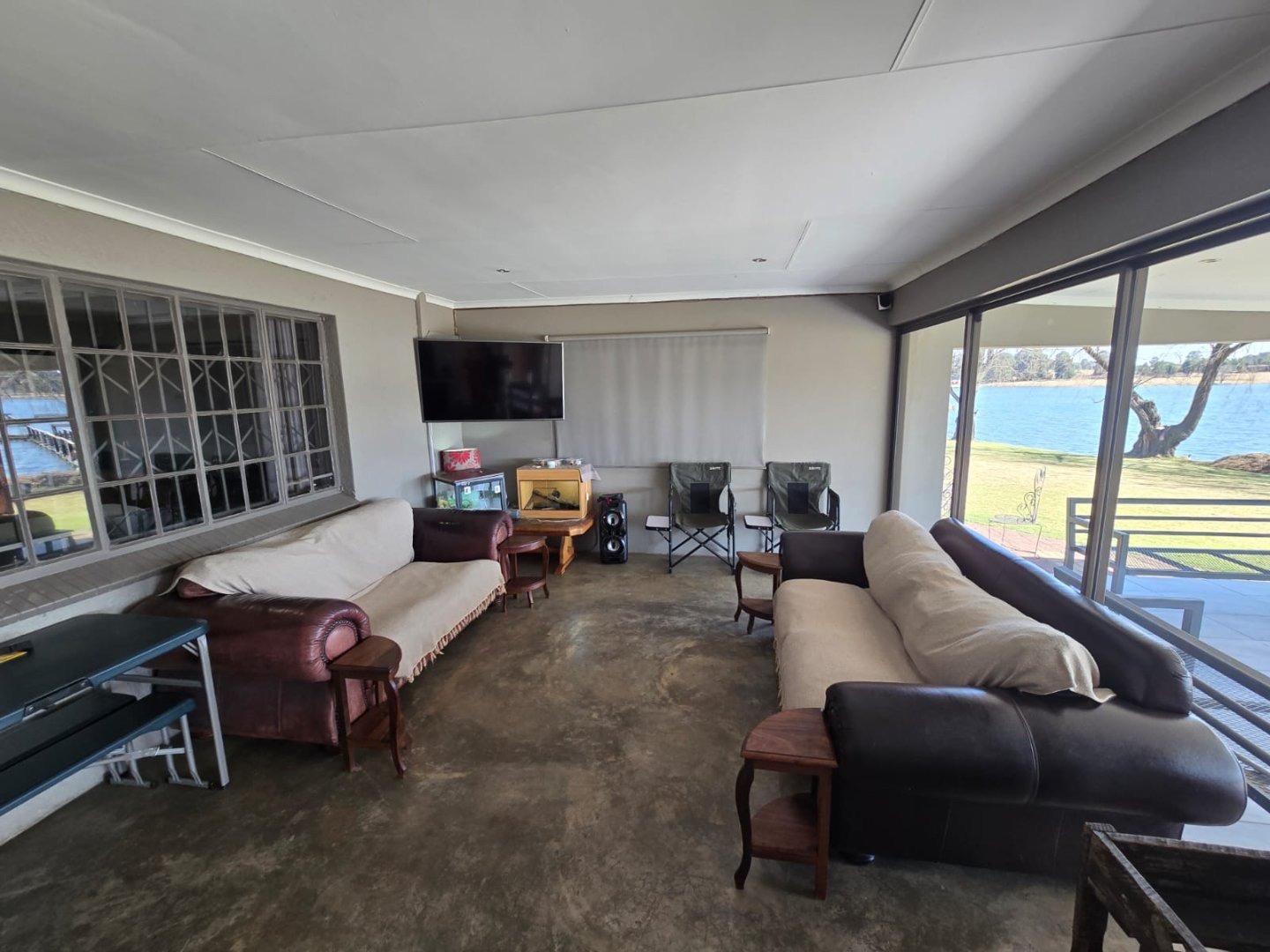 The expansive lounge is light-filled and welcoming, opening onto an enclosed patio fitted with a built-in braai and its own guest toilet. This space is perfect for year-round entertaining while enjoying uninterrupted views of the dam. The patio can also be extended into an open outdoor area, further enhancing the entertainment potential of this exceptional home.
