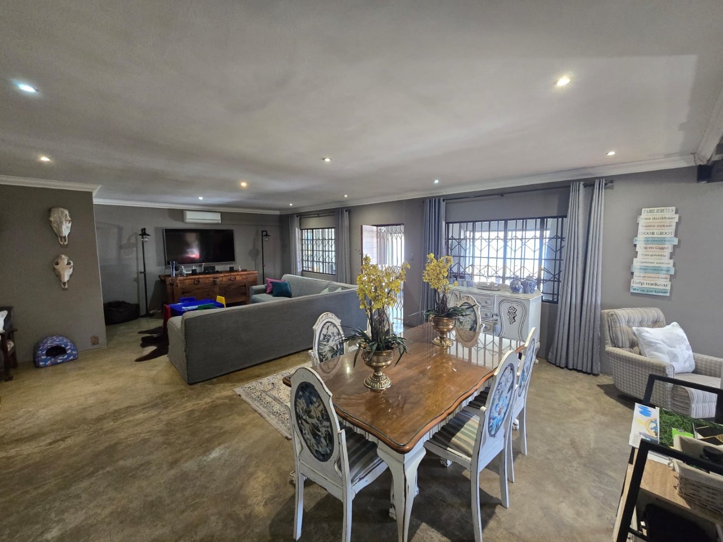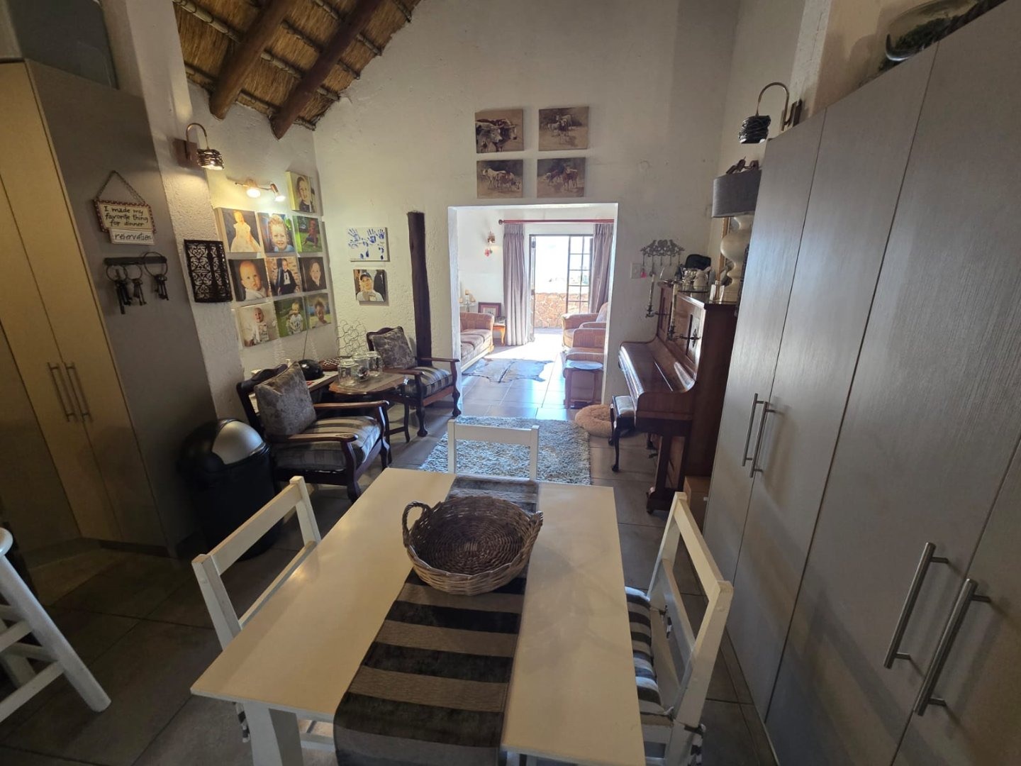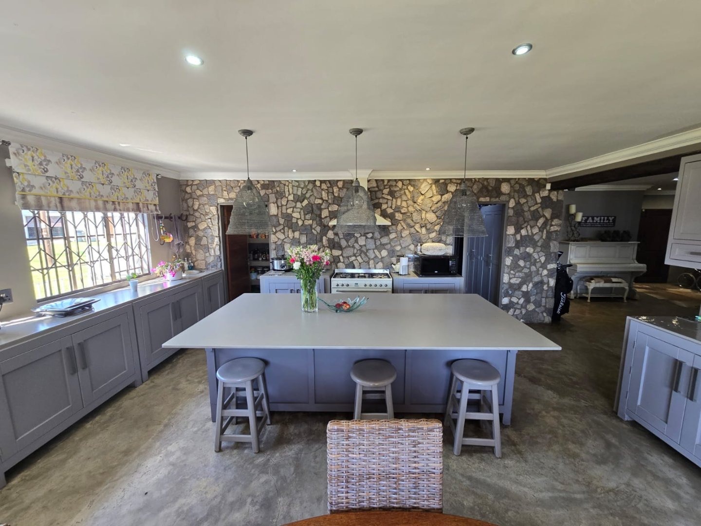 The expansive lounge is light-filled and welcoming, opening onto an enclosed patio fitted with a built-in braai and its own guest toilet. This space is perfect for year-round entertaining while enjoying uninterrupted views of the dam. The patio can also be extended into an open outdoor area, further enhancing the entertainment potential of this exceptional home.