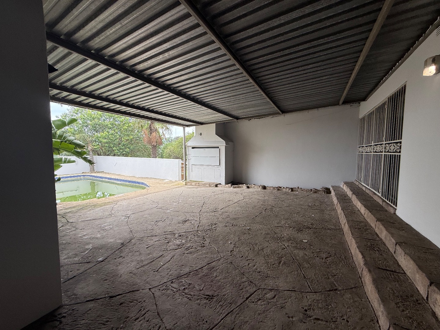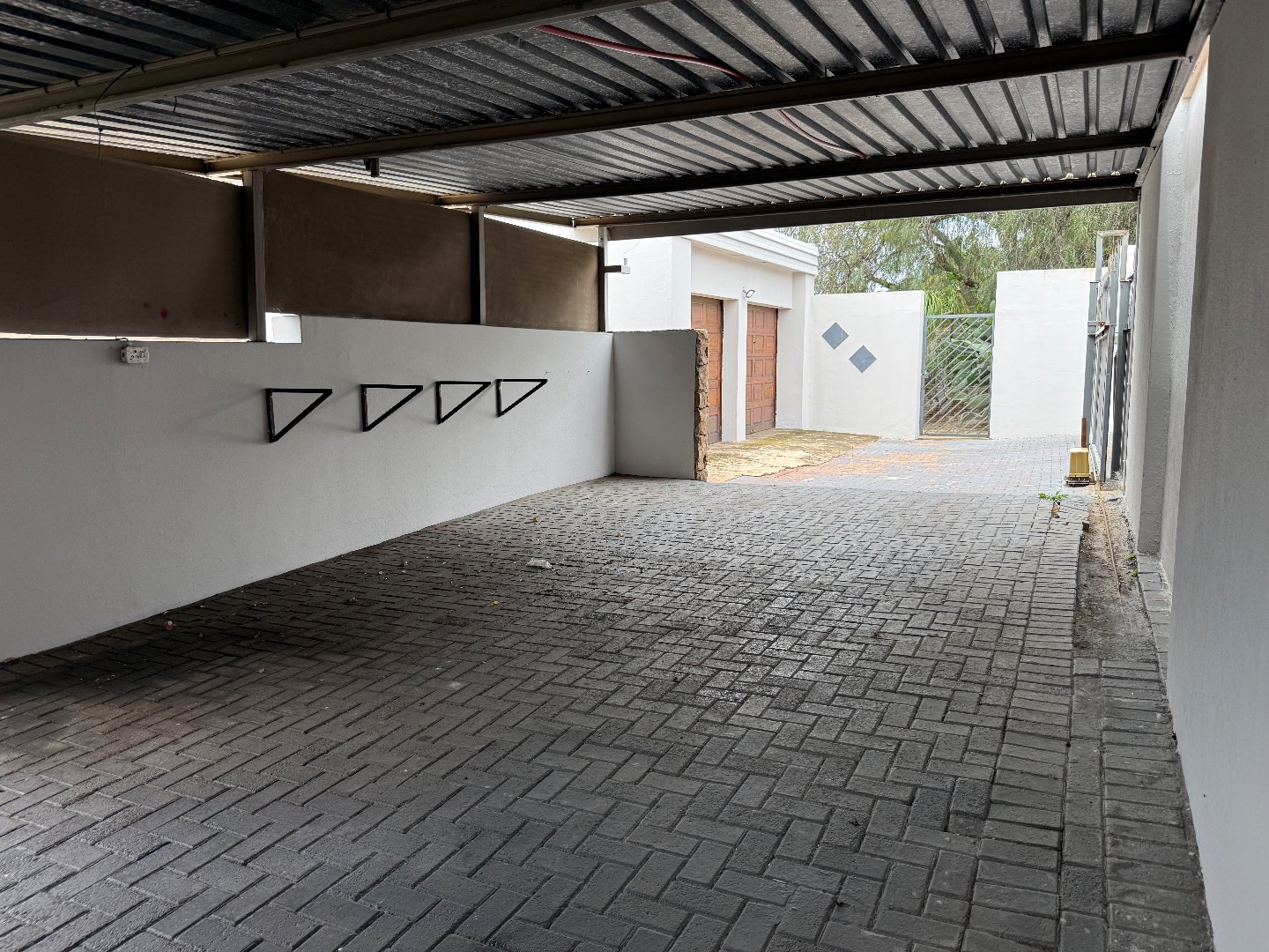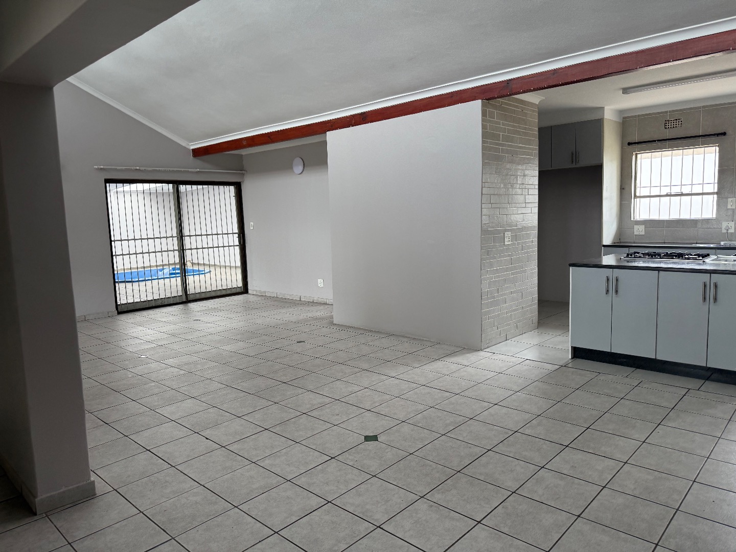 The home welcomes you with two separate entrances, ensuring ease of access and convenience. It features two automated garages as well as four covered parking bays, offering ample secure parking for residents and guests. The generous open-plan layout seamlessly integrates the kitchen, dining room, and lounge area, creating an inviting atmosphere ideal for both everyday living and entertaining. This space extends effortlessly to a covered patio equipped with a built-in braai, overlooking the swimming pool—perfect for relaxed outdoor gatherings.