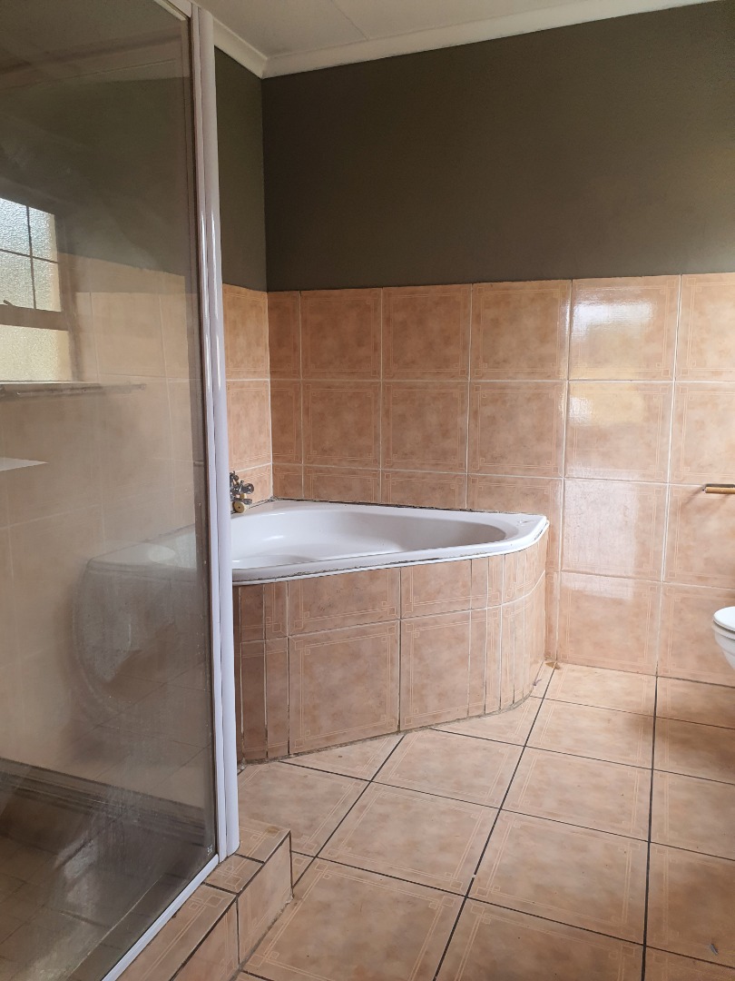 Discover this inviting 3-bedroom, 2-bathroom home available for rent in the suburban area of Model Park, Witbank. This residence offers a practical layout, featuring a comfortable lounge and a functional kitchen, ideal for daily living. The property boasts durable tiled flooring throughout, ensuring easy maintenance. Each bedroom benefits from ample natural light and includes built-in wardrobes, providing convenient storage solutions. The main bathroom features a dual vanity and a corner bathtub with a separate shower, while the second bathroom offers essential amenities. The exterior presents a classic yellow and grey facade with a tiled roof, complemented by security bars on windows and doors for peace of mind.