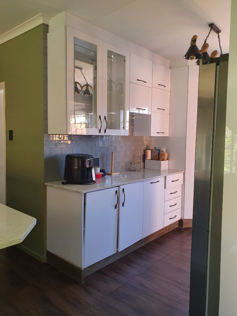 This inviting 3-bedroom, 2-bathroom home in Reyno Ridge offers comfortable living with a 200 sqm floor size. The modern kitchen features sleek white cabinetry, ample counter space, and a convenient pantry, seamlessly flowing into the open-plan lounge and dining areas. One bathroom is an ensuite, providing privacy.